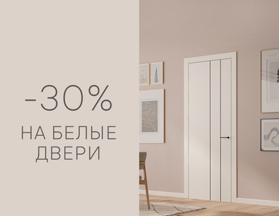 С 30.10.2025 г. по 05.11.2025 г. при покупке дверей коллекций Centro, Galant, Neo, Planum, Planum Pro, Freedom покупатель получает скидку 30% на дверной комплект в искусственной отделке Полипропилен СТБЛ/ Софт-тач белоснежный. В акции участвуют: полотно, короб, фигурные и прямые наличники, карнизы, доборы и соединительные элементы.