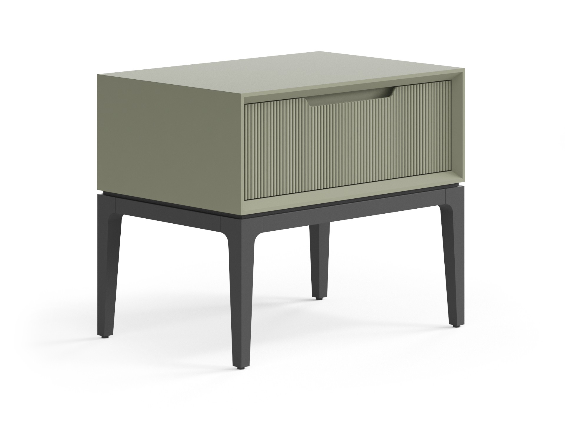 Стильная тумба гармонично впишется в интерьер спальни. Ножки могут быть в цвет корпуса или же в чёрном матовом покрытии эмалью — любое решение будет выглядеть элегантно и современно. Рельефная фрезеровка на фасаде приятна на вид и на ощупь, придаёт изделию индивидуальность и характер. Фрезерованная ручка выполнена специально для удобного захвата, а механизм продуман до мелочей — тихий и плавный, он делает ежедневное пользование изделием максимально комфортным.