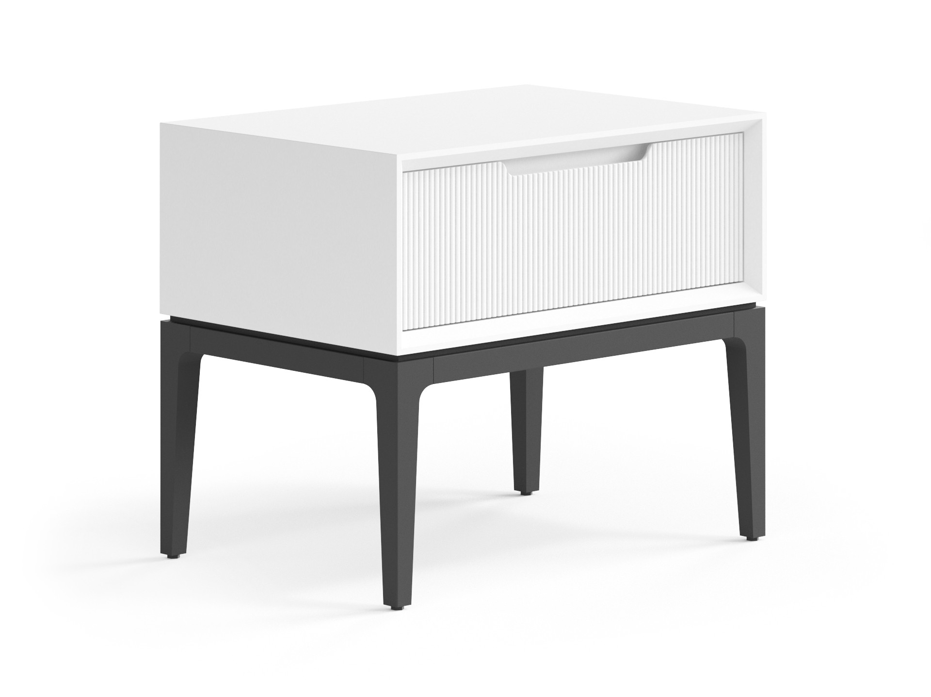 Стильная тумба гармонично впишется в интерьер спальни. Опоры, как и фасад изделия, выполнены из массива. Ножки могут быть древесными в цвет корпуса или же в чёрном матовом покрытии эмалью — любое решение будет выглядеть элегантно и современно. Рельефная фрезеровка на фасаде приятна на вид и на ощупь, придаёт изделию индивидуальность и характер. Фрезерованная ручка выполнена специально для удобного захвата, а механизм продуман до мелочей — тихий и плавный, он делает ежедневное пользование изделием максимально комфортным.