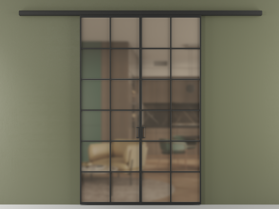 Во всех алюминиевых перегородках, независимо от типа установки, используется компланарный раздвижной механизм, благодаря которому декоративная крышка и полотно находятся в одной плоскости.
