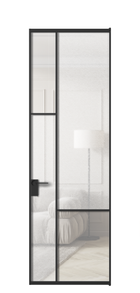 АЛПЛ041.13 Алюминий Черный Рифлёное стекло "Дюна", триплекс, 6 мм + Фактурное стекло "Лёд", триплекс