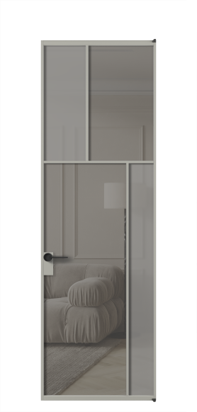 Лаконичный разделительный профиль внутренней раскладки полотна обеспечивает эстетический внешний вид конструкции и идеальную стыковку вставок из стекла.
