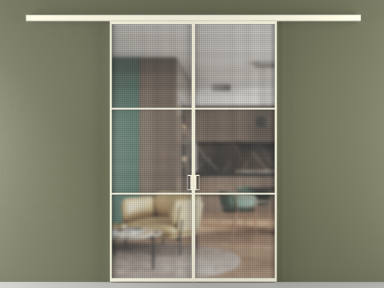 Во всех алюминиевых перегородках, независимо от типа установки, используется компланарный раздвижной механизм, благодаря которому декоративная крышка и полотно находятся в одной плоскости.