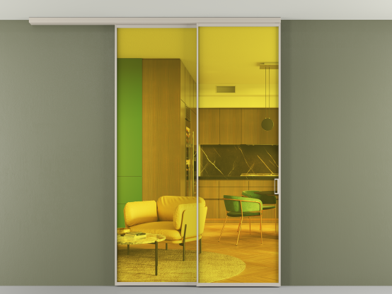 Мы предлагаем девять вариантов декоративного стекла: от кристально-прозрачного до матовых цветных, а также стёкла с эффектом Stopsol, когда лицевая сторона стекла зеркальная, но при включенном освещении за стеклом — становится прозрачной.