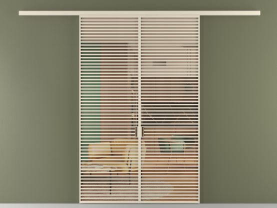 Во всех алюминиевых перегородках, независимо от типа установки, используется компланарный раздвижной механизм, благодаря которому декоративная крышка и полотно находятся в одной плоскости.