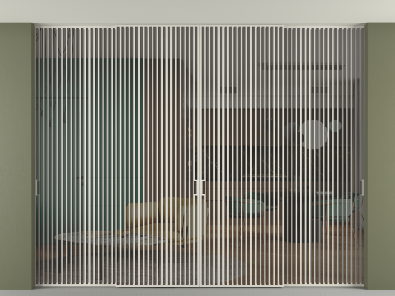 Во всех алюминиевых перегородках, независимо от типа установки, используется компланарный раздвижной механизм, благодаря которому декоративная крышка и полотно находятся в одной плоскости.